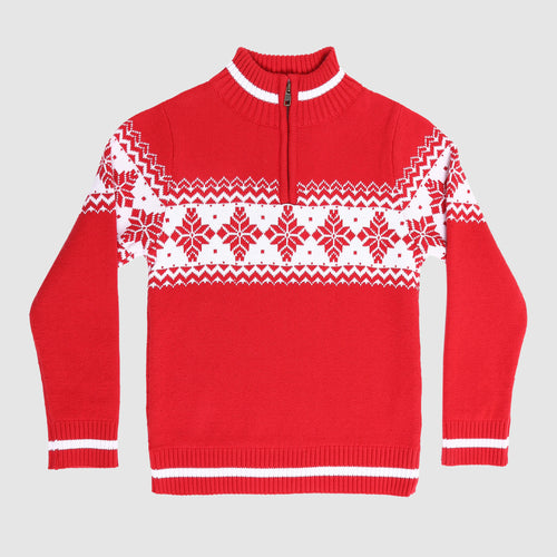 Alpine 1/4 Zip Snow Flake Sweater- Red/White