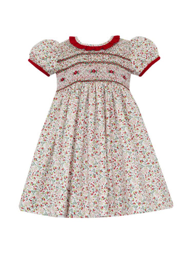 Lily Holiday Liberty Print Dress w/ Ruffle Collar SS- Red/Pink