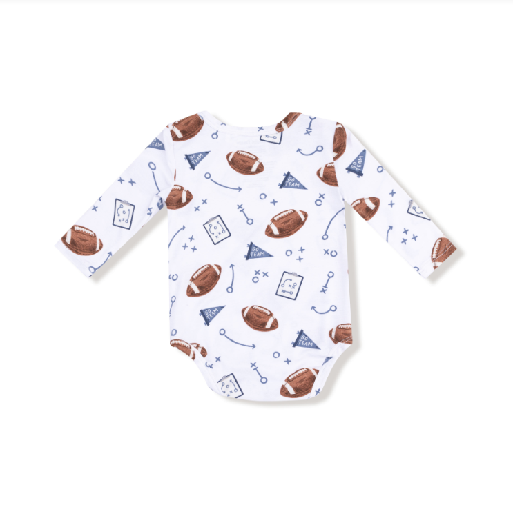 Get ready for game day fun with the Touchdown Time Lap Shoulder Bodysuit in white and navy blue! Perfect for baby and toddler boys, this long-sleeve bodysuit features easy snaps at the crotch for quick changes. Cozy and cute, it’s a winning choice for fall and winter adventures.