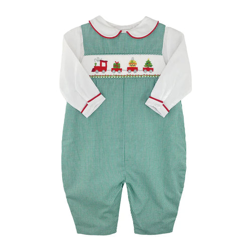 Christmas Train Longall & Shirt Set- Green Gingham
