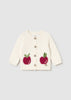 Wrap your little one in cozy charm with the Apples Knit Cardigan in Ecru. This long-sleeved cardigan features sweet knit apples on each side near the bottom, adding a playful touch to your newborn baby girl's outfit. The waved collar and button fastenings make dressing easy, while the blend of fabrics and ribbed detailing create a unique, textured look. Perfect for keeping her snug and stylish all day long.