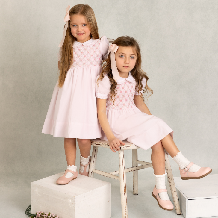 Dress your little princess in the timeless charm of our Dainty Smocked Floral Dress in Light Pink! Featuring a sweet peter pan collar and a fully smocked bodice adorned with delicate floral embroidery, this lightweight and breezy dress offers both comfort and style. Perfect for playdates or special occasions, it comes complete with matching bloomers for the perfect finishing touch.