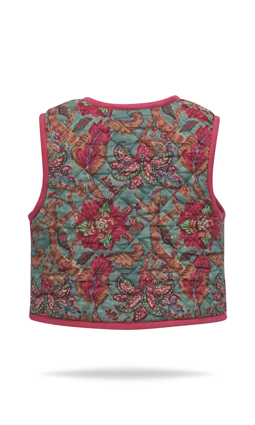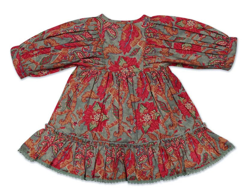 This delightful 3-piece set combines the soft Sage Floral Mary Dress with mid-calf length and lace frill, the reversible Ari Quilted Vest in festive Christmas Red and Sage Floral print for versatile warmth, and a matching Christmas Red Corduroy Sling Bag with handy pockets and a tassel. Perfect for playful days, it offers cozy layering and practical style for your little one's adventures.