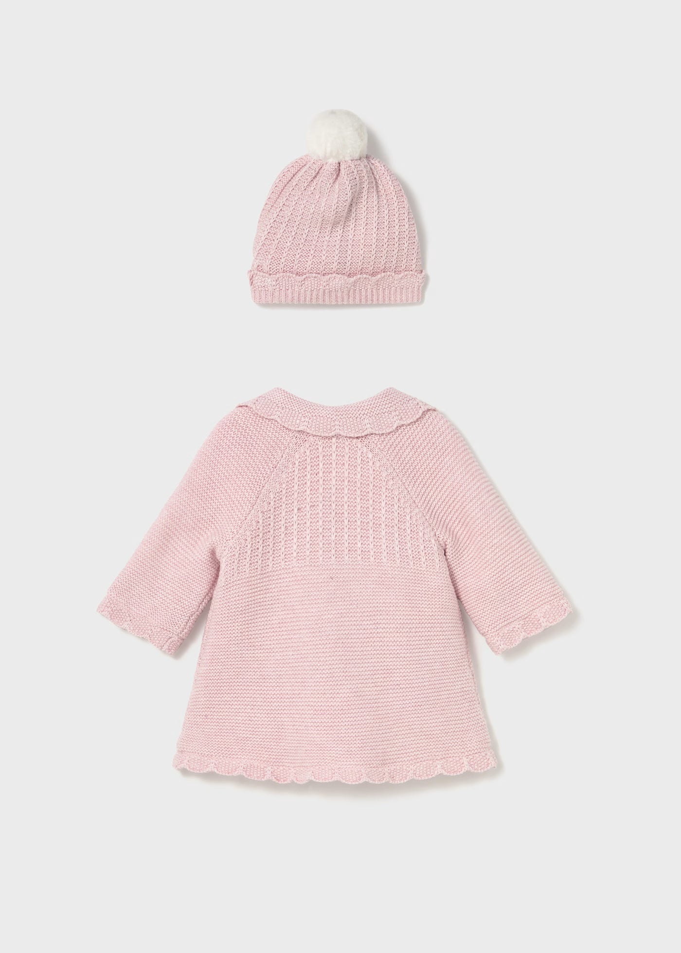 Wrap your little one in cozy charm with this Knit Coat and Pom Pom Hat set in Pink Quartz Heather. Perfect for fall and winter, this adorable duo keeps your baby girl stylish and snug while adding a touch of playful warmth.
