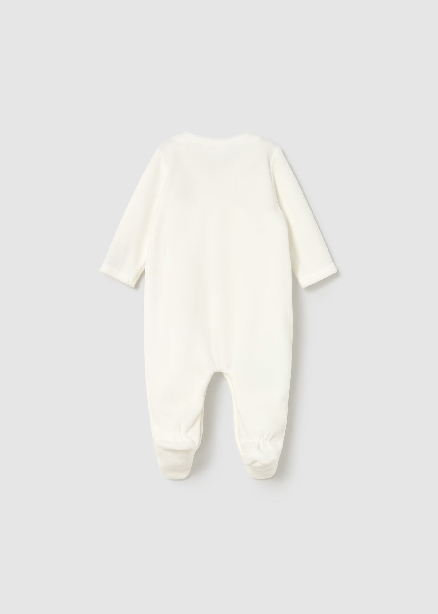 Snuggle your baby girl in this White Velour Footie, featuring delicate multi-pink embroidery for a sweet touch. The long sleeves and soft velour fabric keep her comfy and warm, while the crossover collar and full side slit with press studs make dressing a breeze. Easy snap buttons at the crotch add quick diaper changes to your daily routine. Perfect for cozy days and dreamy nights!