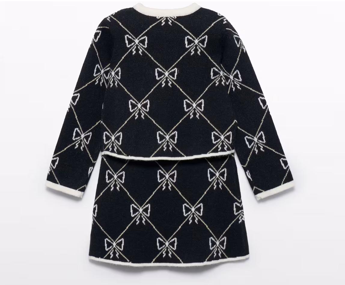 Girl Knit Tricot Skirt Set- Black