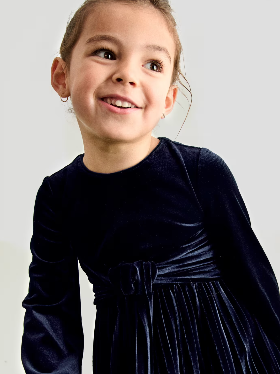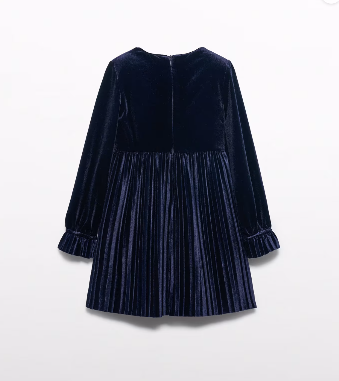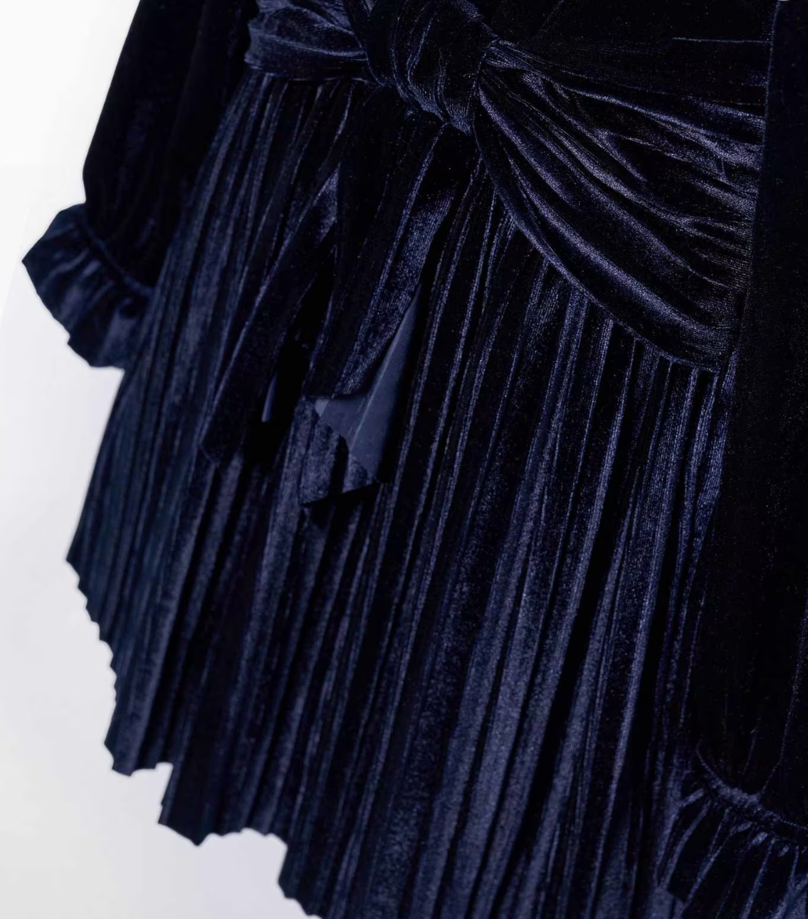 Girl Pleated Velvet Dress- Navy