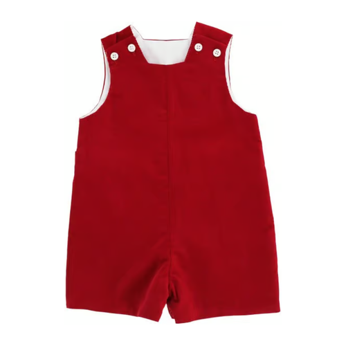 Christmas Plaid Santa Sleigh Smocked Overalls- Red