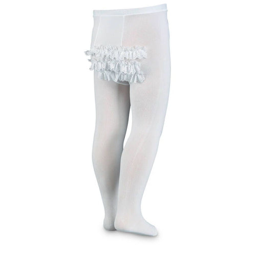 Footless Tights w/ Pima Cotton Ruffle- Navy