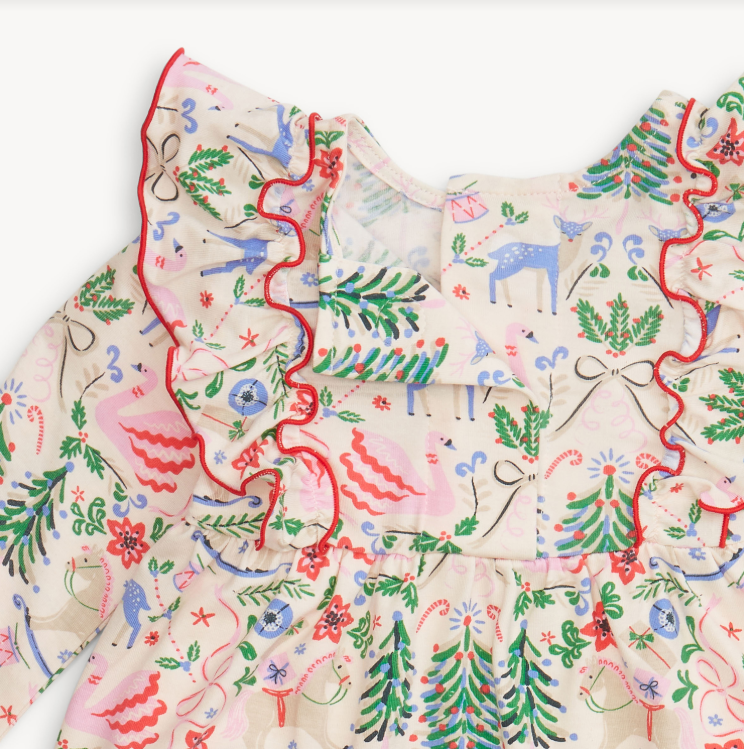 A charming 2-piece dress with ruffle and leggings set that twirls and helps kids dress themselves with magnets.