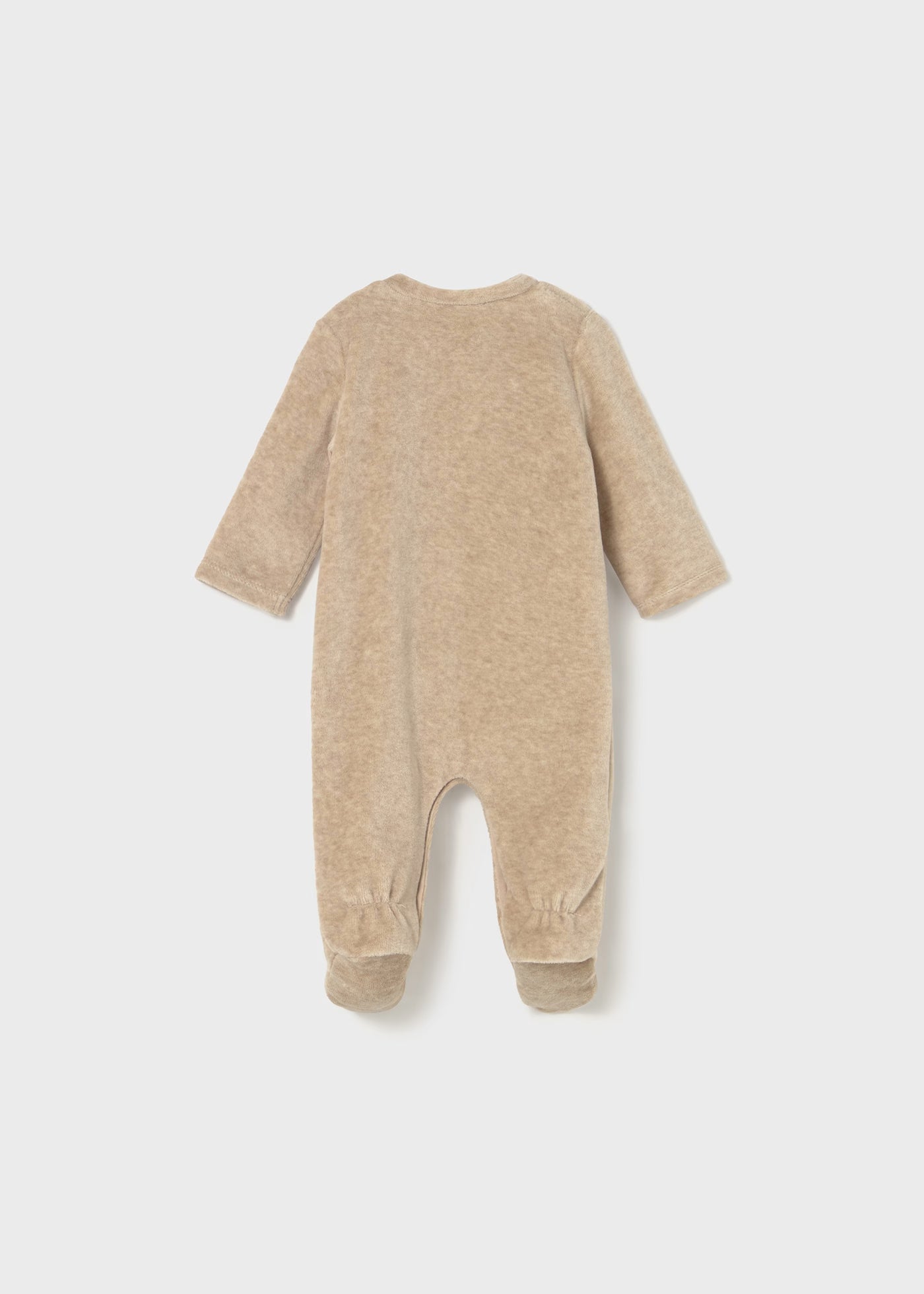 The Oat Brown Woodland Velour Footie features adorable fox and squirrel appliques on the chest. This cozy long-sleeve romper has a crossover collar and a full side slit with snap buttons for easy dressing. It also includes snap closures at the crotch for quick diaper changes. Made from warm, soft cotton velour, it’s both comfy and cuddly. Cute, embroidered details add charm, and the bigger sizes (12 and 18 months) come with non-slip soles to help little explorers stay steady on their feet.