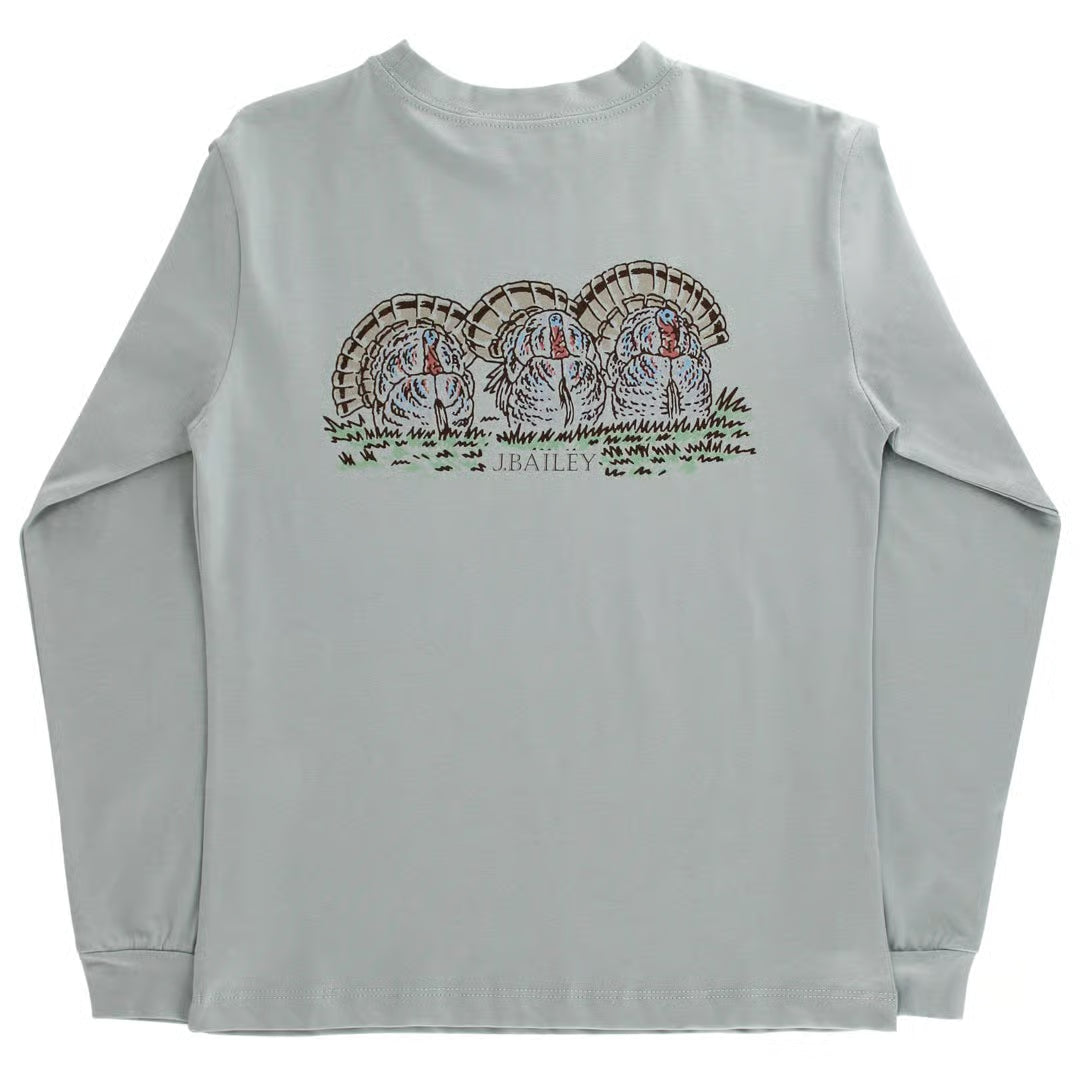 Keep your little one cozy with the long-sleeve Logo Tee featuring a Turkey on a cheerful muted sage background. Made from 100% soft cotton, this playful shirt is perfect for fall and winter holiday fun. Its comfortable fit makes it an ideal casual choice for boys who love to celebrate the season in style.