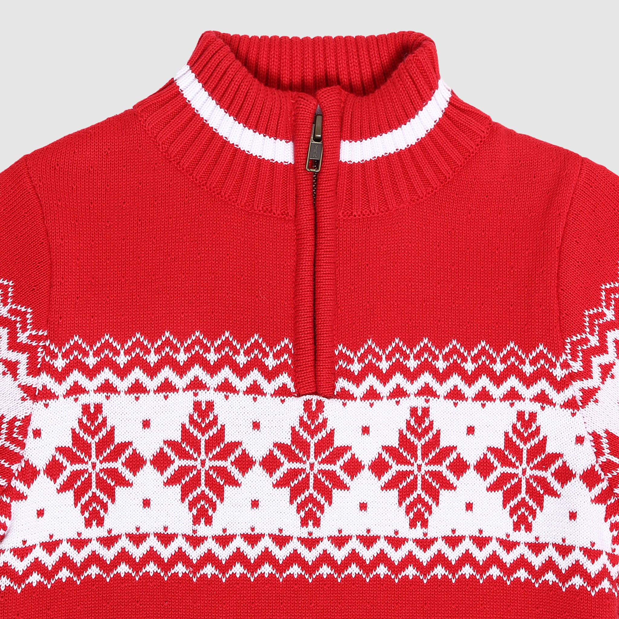Cozy up in the Alpine 1/4 Zip Snow Flake Sweater, where festive red meets crisp white in a wintry dance. Perfect for chilly days, its comfy fit and easy zip make layering a breeze. Let the snowflake design add a playful touch to your cold-weather wardrobe!