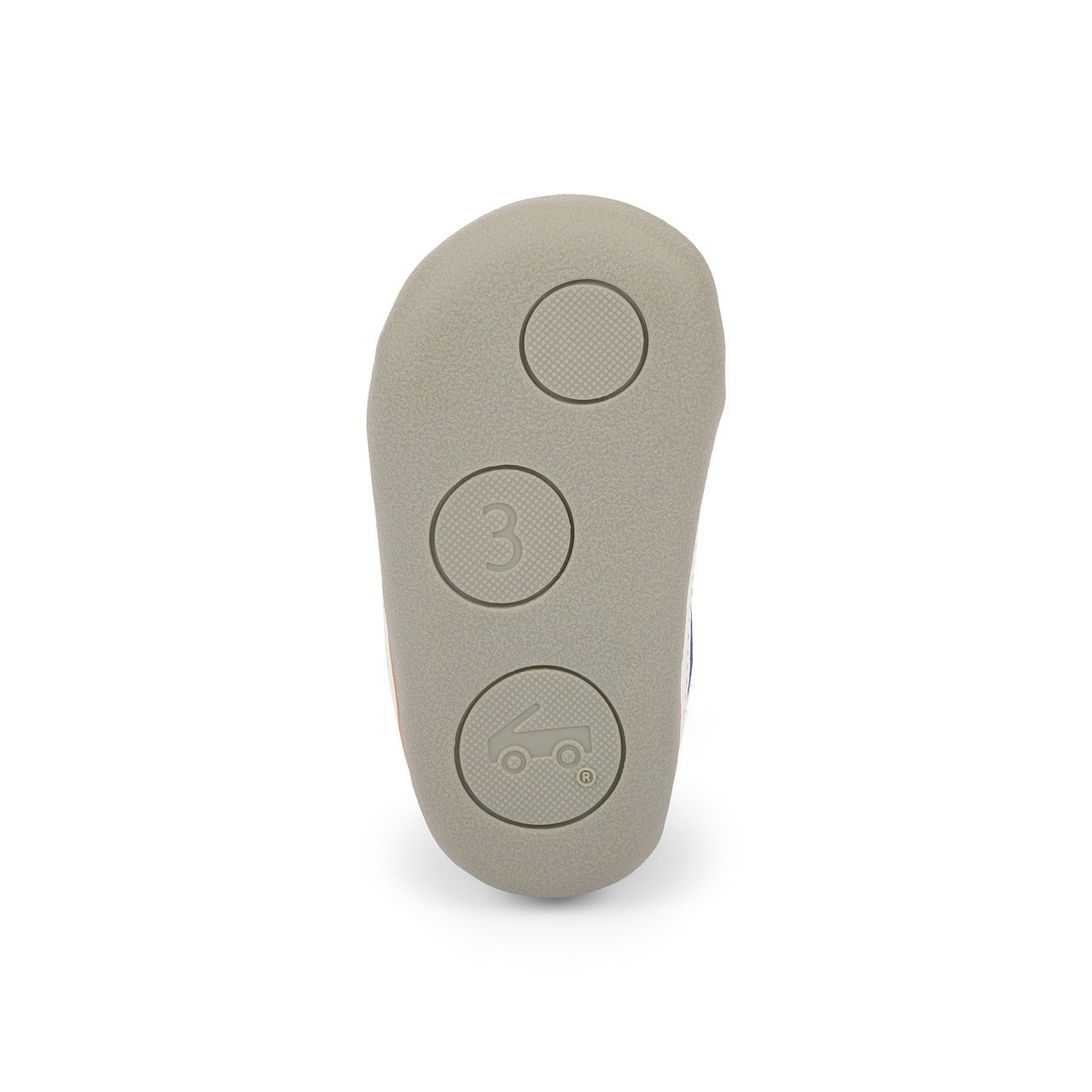 Watch his world expand step by step in the Stevie first walker. Crafted from classic navy denim and eco-friendly recycled materials, this lightweight shoe features a flexible rubber outsole perfect for budding adventurers. The nubuck-feel detail and rubberized toe cap protect little toes, while the recycled mesh lining keeps feet breathable and comfy. An adjustable hook-and-loop strap and faux elastic laces ensure a secure fit, and the generous toe box gives growing feet room to develop naturally. Awarded the Seal of Acceptance from the American Podiatric Medical Association—because healthy steps start here.